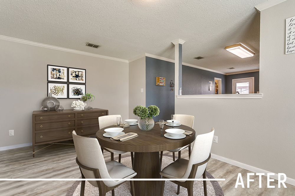 We can virtually stage an empty space and re-stage a furnished space.